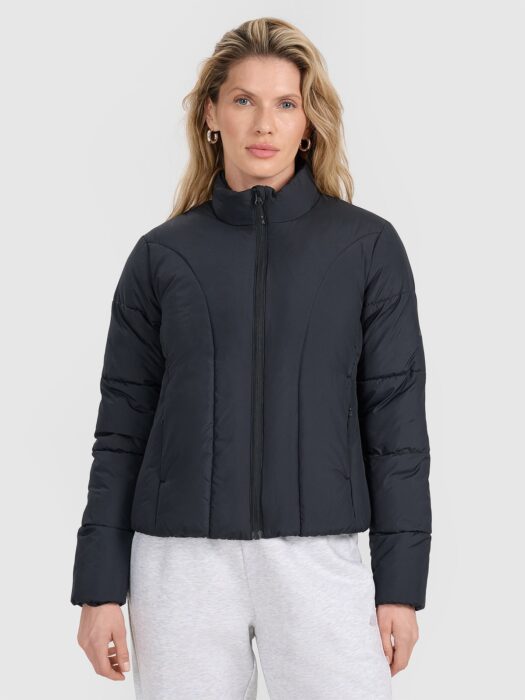 Kurtka puchowa pikowana damska z wypełnieniem w postaci puchu syntetycznegoKurtka puchowa 4F damska z wypełnieniem w postaci puchu syntetycznego, które jest trwalsze i łatwiejsze w utrzymaniu niż puch naturalny