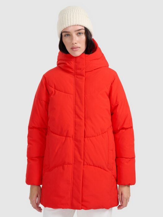 4F Kurtka puchowa z wypełnieniem syntetycznym damska – czerwona S wyprzedaż! Zniżka 28%!