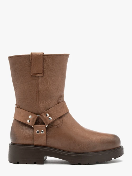 Sprawdź opis dla Botki typu biker z metalowymi ozdobami i kup taniej. Brązowe botki biker z metalowymi ozdobami z linii RKO