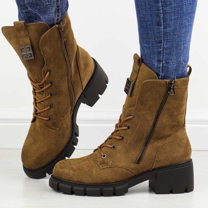 Brązowe zimowe botki damskie na traperze M.Daszyński 2038-48 wyprzedaż! Zniżka 13%!