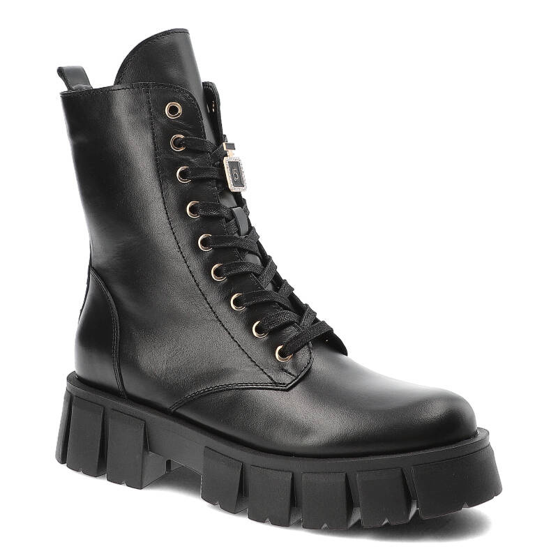 Botki CHEBELLO – 3043_-401-000-MIC-S217 Czarny wyróżniają się masywną, głęboko rzeźbioną podeszwą, która nie tylko podkreśla ich odważny kształt, ale również zapewnia dodatkową przyczepność oraz trwałość
