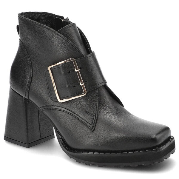 Czarne Botki Exquisite Modne Skórzane Buty Na Obcasie wyprzedaż! Zniżka 19%!