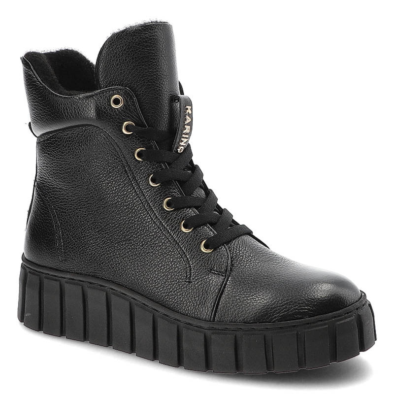 Czarne trzewiki KARINO – 4452/126-F Czarny/Lico oparto na platformie, która dodaje wzrostu niskim sylwetkom
