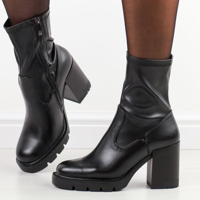 Czarne wysokie botki damskie na słupku Potocki 12419 wyprzedaż! Zniżka 14%!