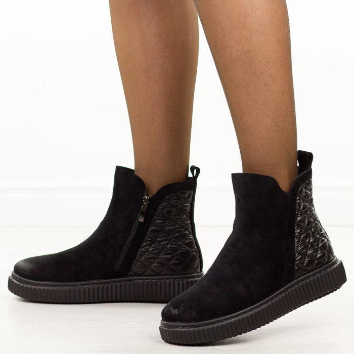 Czarne zamszwe botki damskie Potocki 19365 – wyprzedaż