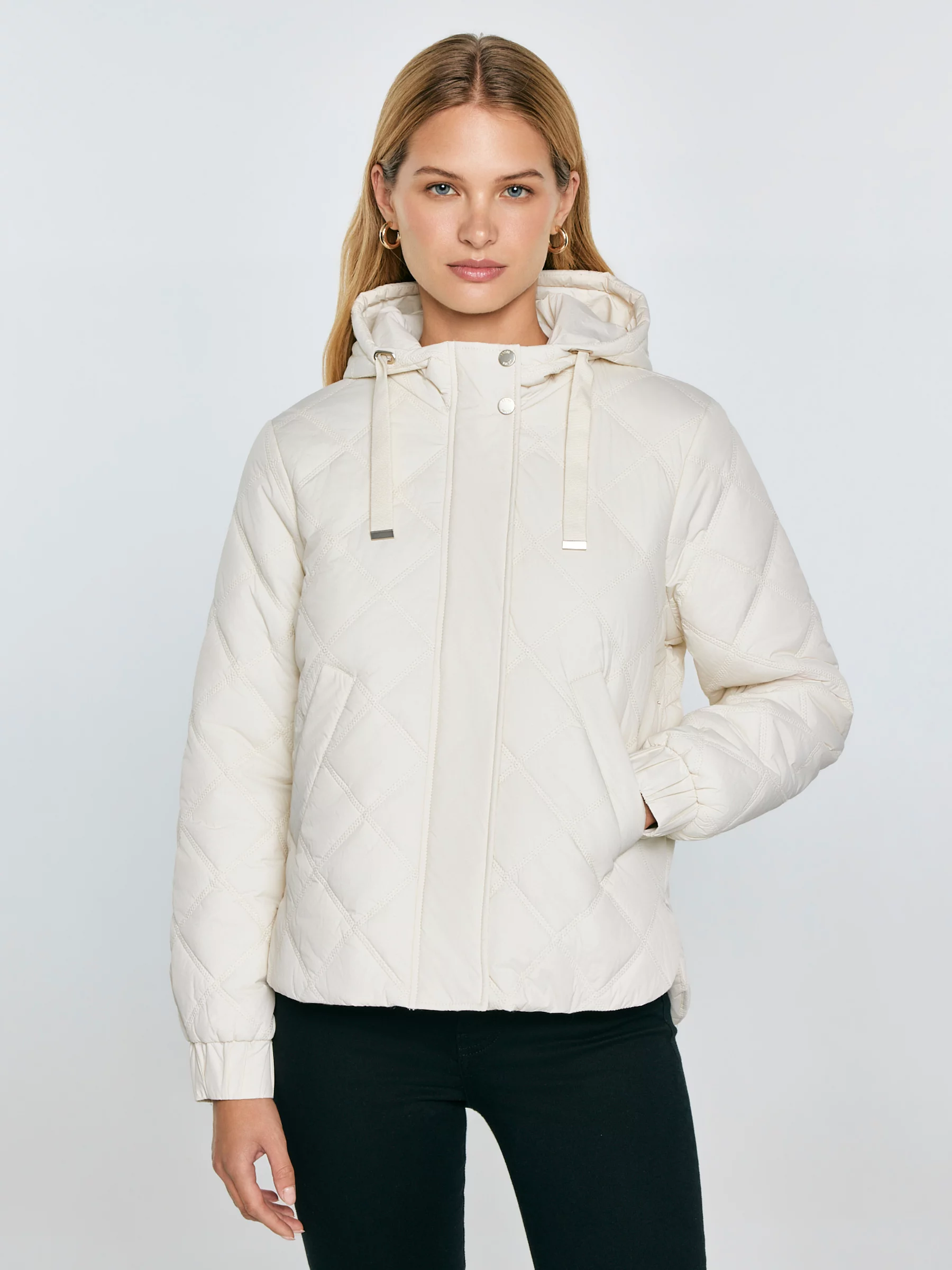 Kurtka damska pikowana z kapturem kremowa Wynterina 103