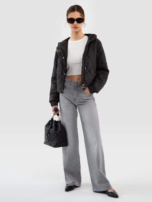 Główne cechy produktu: elegancki pikowany design, czarny kolor, praktyczny kaptur i kieszenie, listwa przykrywająca główny zamek dla dodatkowej ochrony, elastyczna taśma na rękawach dla komfortu noszenia, lekko wydłużony tył, żakardowa metka z charakterystyczną gwiazdką
