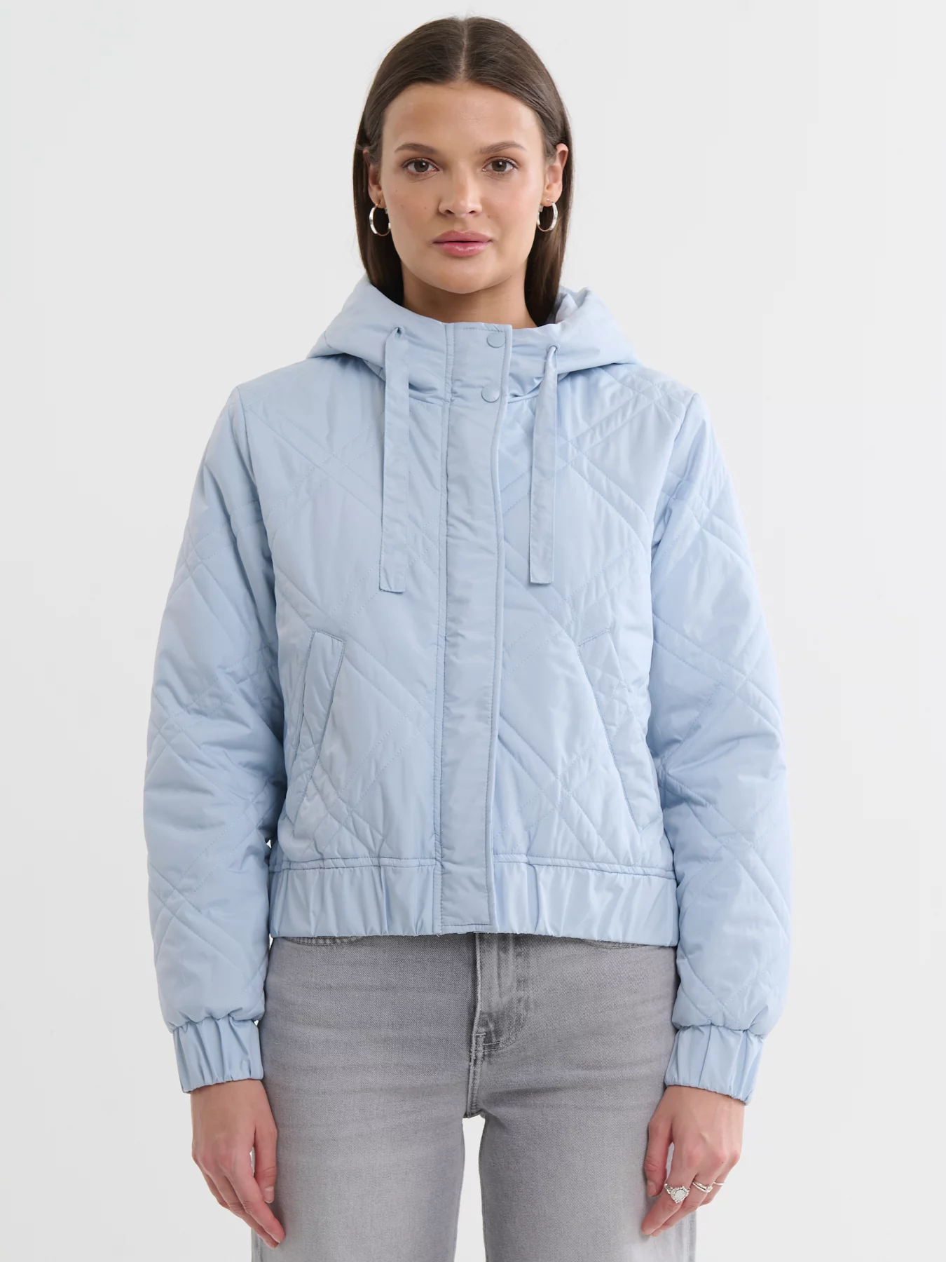 Główne cechy produktu:delikatny błękitny kolor,pikowany materiał zapewniający ciepło,praktyczne kieszenie na froncie,listwa przykrywająca główny zamek,elastyczne panele na rękawach i w talii,sznurki przy kapturze z subtelnie umieszczonym logo