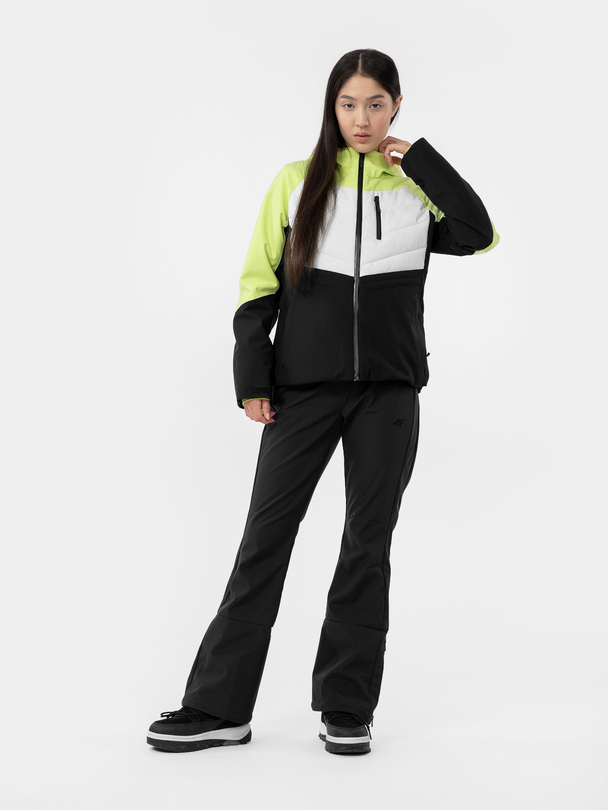 Dowiedz się jak dobrać kurtkę narciarską/snowboardową?Kurtka narciarska membrana 10 000 damska – CECHY:krój gwarantujący komfort i wygodę podczas aktywności na stoku,system wentylacji zapinany na zamek zlokalizowany pod pachami,regulowane na rzep mankiety oraz dół z elastycznym ściągaczem ze stoperem,elastyczny, przedłużony mankiet nie przepuszcza chłodu,zintegrowany, lekko profilowany kaptur z regulacją głębokości,podwyższony kołnierz osłania przed wiatrem,1 wewnętrzna kieszeń na telefon, zapinana na rzep + 1 kieszeń z siatki na gogle,wewnętrzny, regulowany pas śnieżny zabezpiecza przed przedostawaniem się zimna i śniegu do wnętrza kurtki,ocieplina syntetyczna i pikowane panele z przodu wspierają komfort cieplny,oddychająca membrana NeoDry 10 000 / 8 000 zapewnia ochronę przed umiarkowanymi opadami deszczu, bądź śniegu,hydrofobowa impregnacja materiału oraz klejone szwy wspierają ochronę przed przemakaniem,zamek główny YKK zabezpieczony wewnętrzną listwą przeciwwiatrową z ochroną podbródka ogranicza utratę ciepła,2 kieszenie boczne z ociepleniem, zapinane na zamek + 1 piersiowa, zapinana na zamek + 1 ski pass umieszczona na lewym rękawie