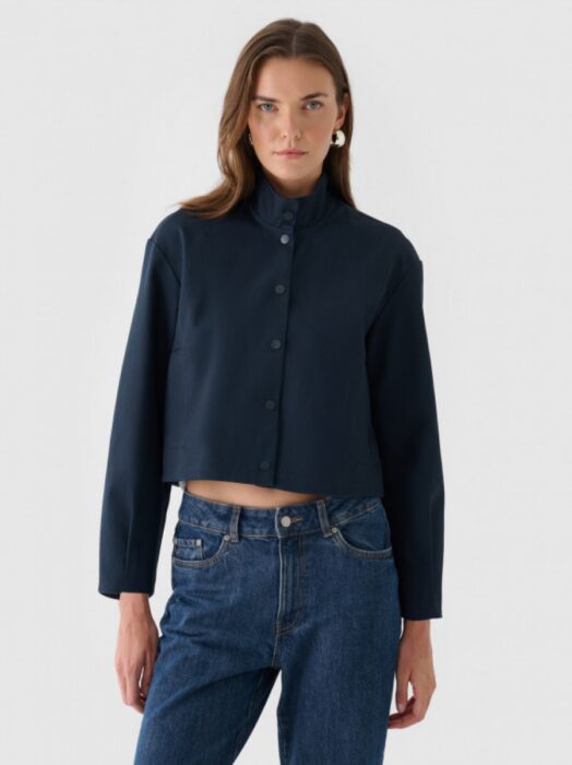 Cechy:krój regular o skróconym fasonie crop, zakres rozmiarów: XS-XL, stójka,zapięcie na napy, dwie boczne kieszenie otwarte,wewnętrzna kieszeń na napę,dół z regulacją ze stoperem,bawełniana podszewka,oddychająca membrana 10000 chroni przed umiarkowanymi opadami deszczu i śniegu