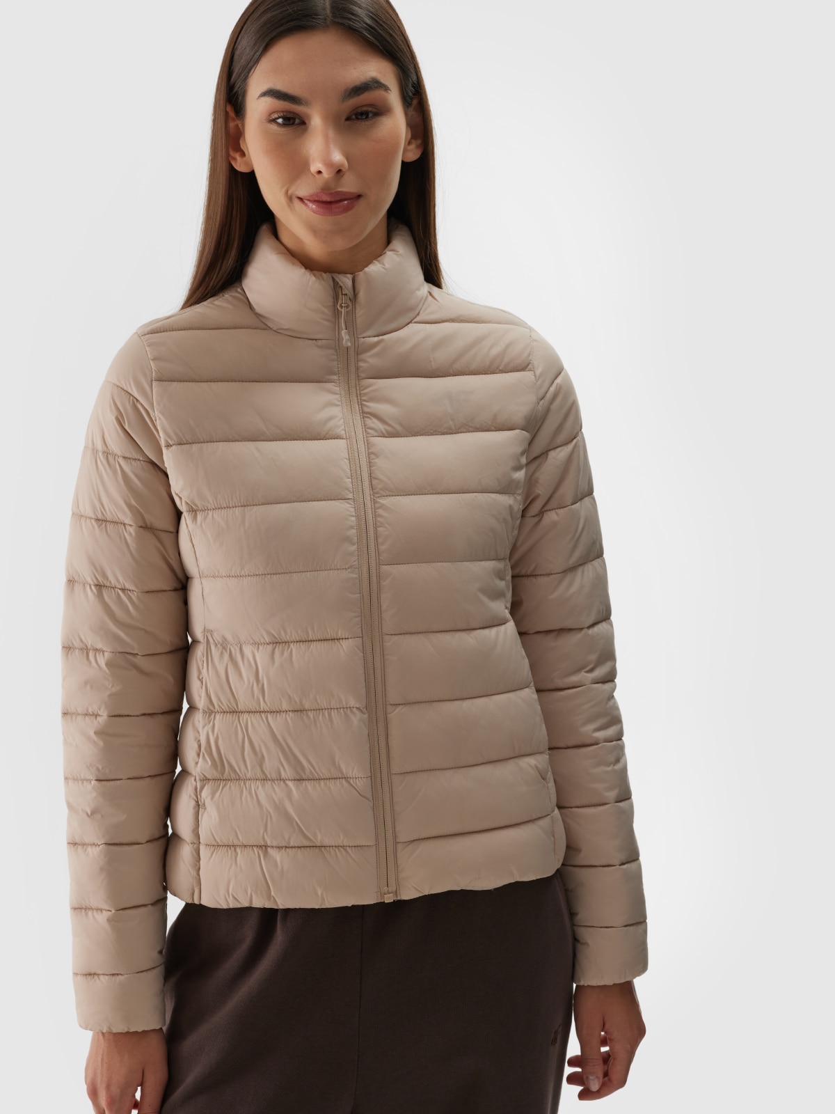 Kurtka puchowa z wypełnieniem z recyklingu damska – beżowa wyprzedaż! Zniżka 20%!