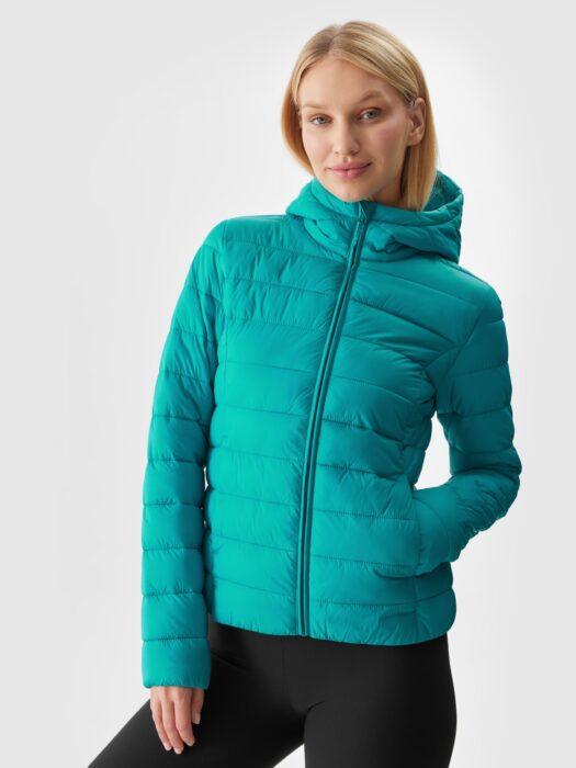 Kurtka puchowa z wypełnieniem z recyklingu damska – turkusowa wyprzedaż! Zniżka 20%!