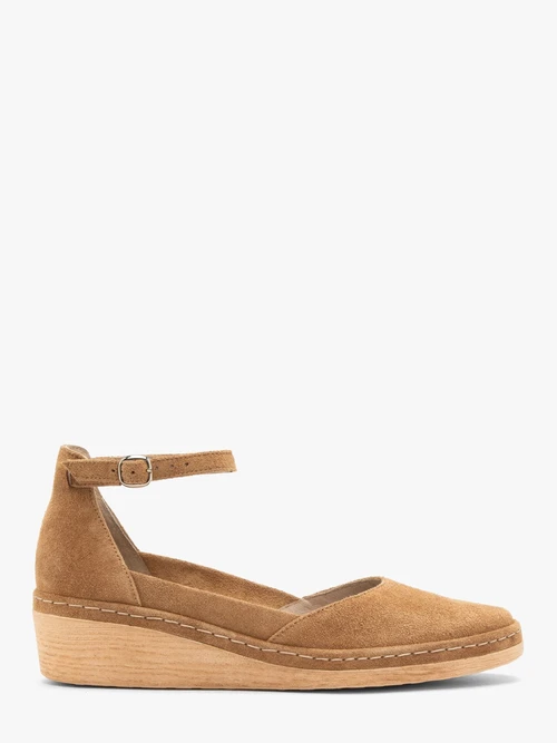 Sprawdź opis dla Rude czółenka na platformie z paskiem wokół kostki i kup taniej. Dwuczęściowe czółenka w kolorze rudym z linii RYŁKO RELAXModel wykonany ze skóry welurowej