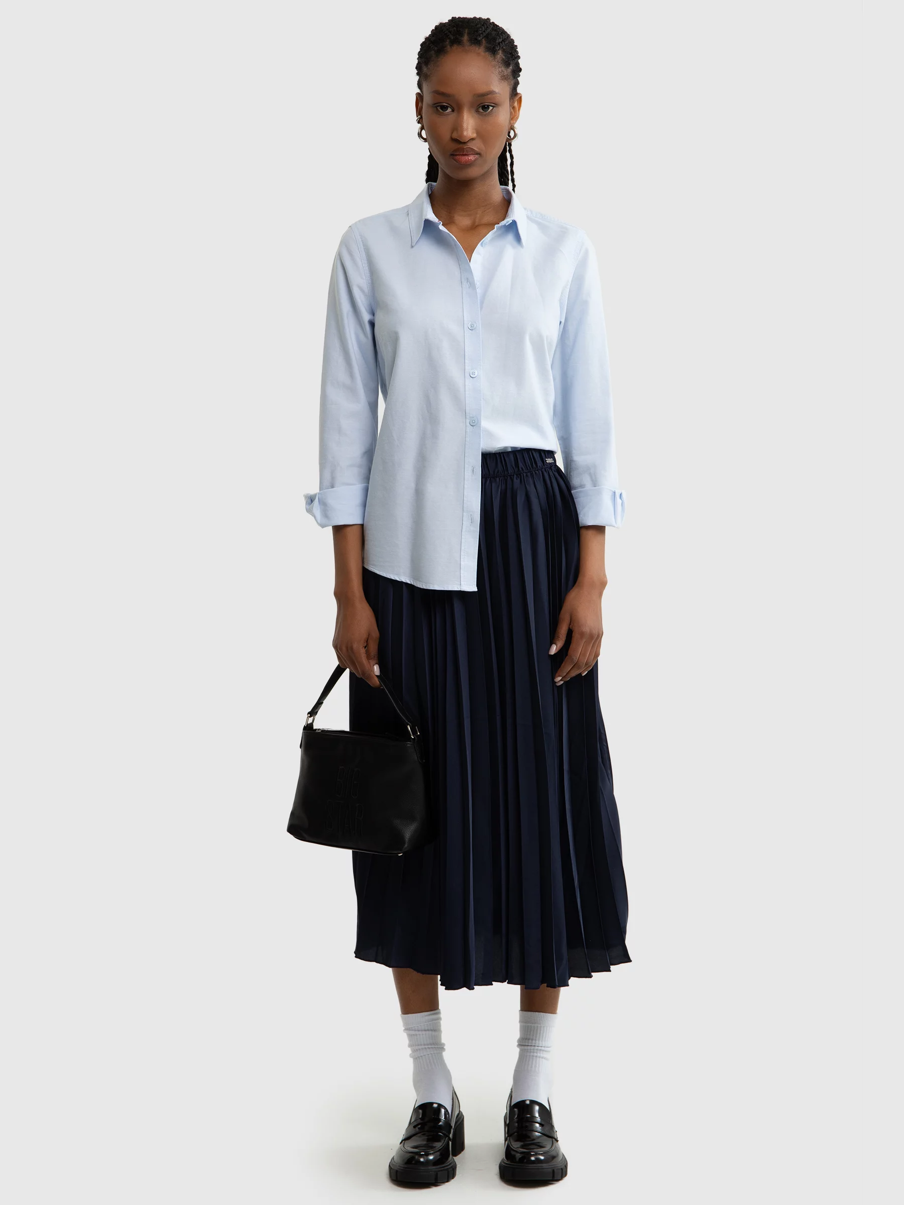 Spódnica od BIG STAR ma elastyczną talię i sięga do połowy łydki