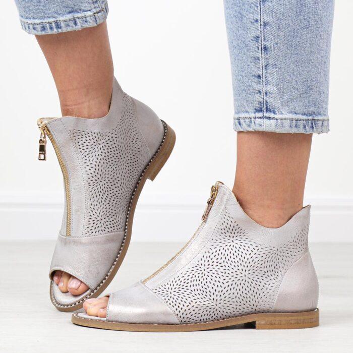 Sprawdź opis dla Złote skórzane Polskie sandały damskie, botki Deoni D520a i kup taniej. Złote sandały damskiena płaskim spodzie, które pełnią również funkcję płaskich botków z odkrytymi palcami, są idealnym wyborem na wiosnę, lato i jesieńIch ażurowana cholewka wykonana ze skóry naturalnej zapewnia przewiewność, a zapinany złoty suwak ułatwia zakładanie